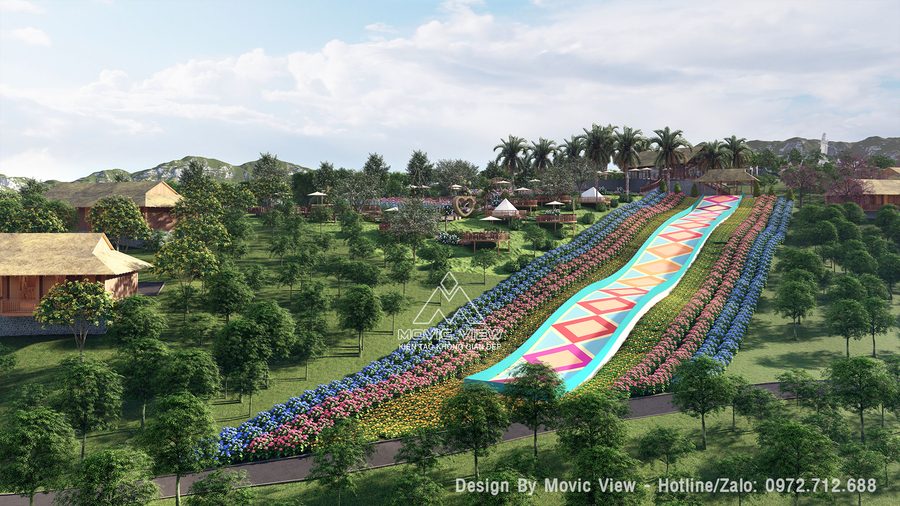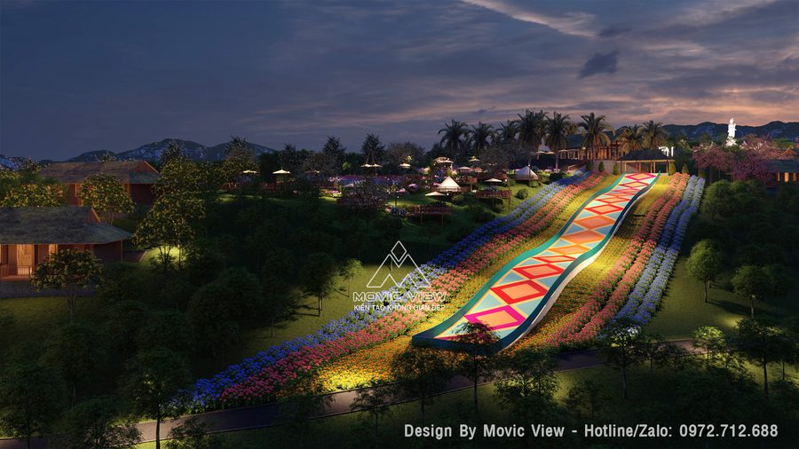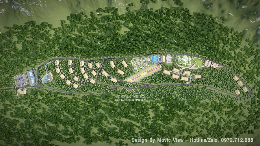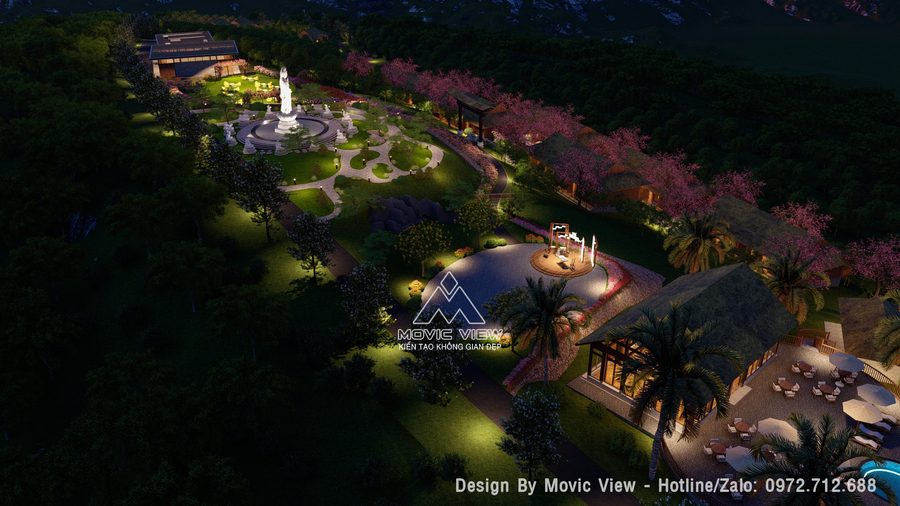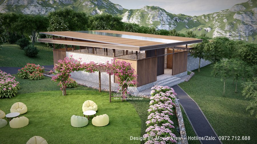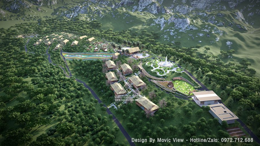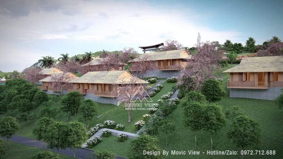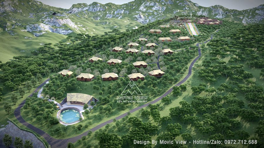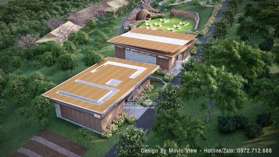 Khu dịch vụ vui chơi nghỉ dưỡng mang đến không gian thư giãn lý tưởng cho du khách, với thiết kế hiện đại hòa quyện cùng thiên nhiên tươi đẹp. Tọa lạc giữa một khu rừng xanh bạt ngàn và những ngọn đồi nhấp nhô, khu nghỉ dưỡng này sở hữu kiến trúc biệt thự nghỉ dưỡng cao cấp với mái ngói độc đáo, tạo cảm giác gần gũi, thân thiện nhưng cũng không kém phần sang trọng.