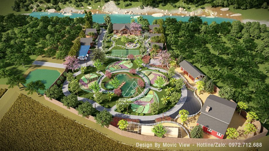 Mô hình Homestay gia đình, thiết kế với các hạng mục nhà chính, bể bơi, các căn bungalow nhỏ để khi có khách, bạn bè tới chơi ở lại, khu vực vườn rau, vườn thú thiết kế thẩm mỹ, vừa nuôi trồng để làm thực phẩm sạch, vừa tạo góc checkin thú vị, sân thể dục thể thao.