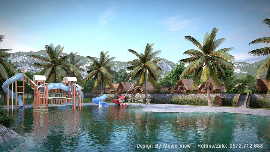 Khu vực thể thao: Hồ bơi, sân tennis, sân golf mini, hoặc khu thể thao nước như kayak, thuyền buồm nếu có địa điểm ven biển.