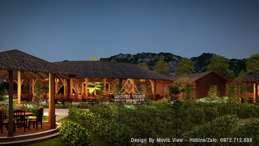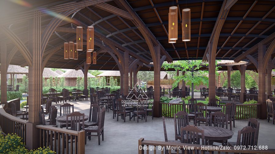 Quầy bar và quán cà phê: Tạo không gian thoải mái, ấm cúng hoặc sôi động. Các quán cà phê có thể kết hợp với khu vực ngoài trời nhìn ra biển hoặc núi.
