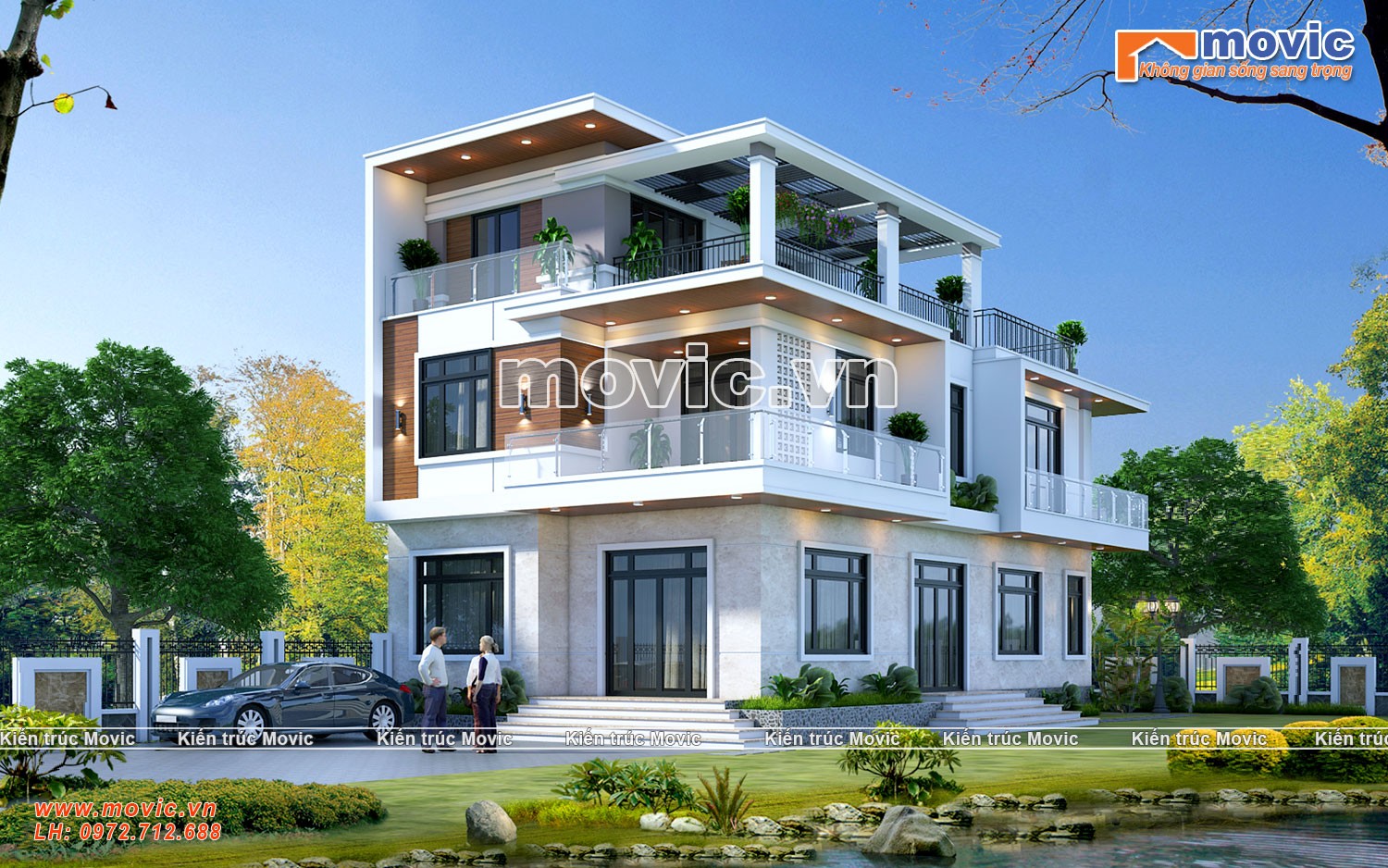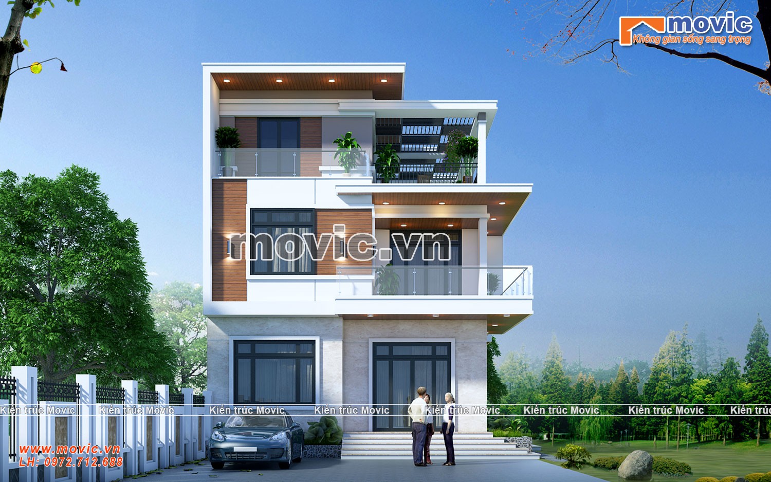 Trên đây là mẫu biệt thự phố 3 tầng hiện đại 2 mặt tiền đẹp tại Hòa Bình – MB20308